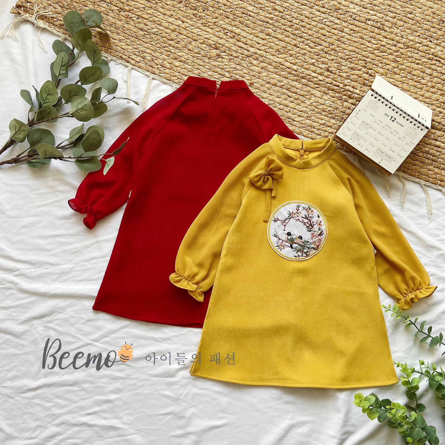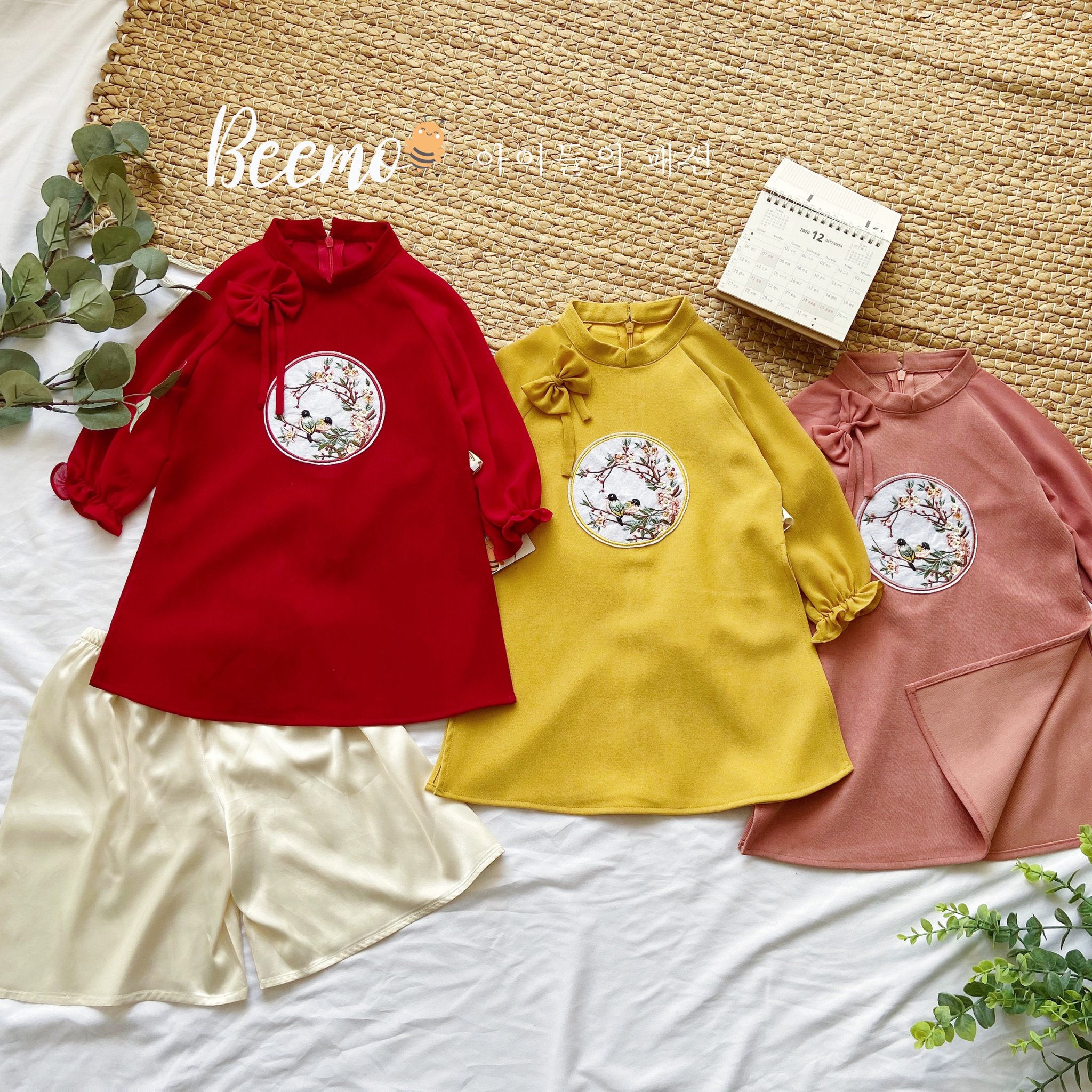 ⛳️ Chất liệu nhung tăm phối tay voan mềm mại kết hợp cùng quần lụa bóng thướt tha ⛳️ Điểm nhấn hình thêu cành hoa cùng chiếc nơ xinh xắn bên cổ bé diện yêu cực kỳ ⛳ 3 màu đỏ - vàng - hồng mix quần bé trắng bé nào mặc cũng ưng ⛳ Bé có thể diện đi chúc Tết họ hàng, đi du xuân hoặc chụp ảnh năm mới đều đẹp mẹ nhé 😍 _____________
