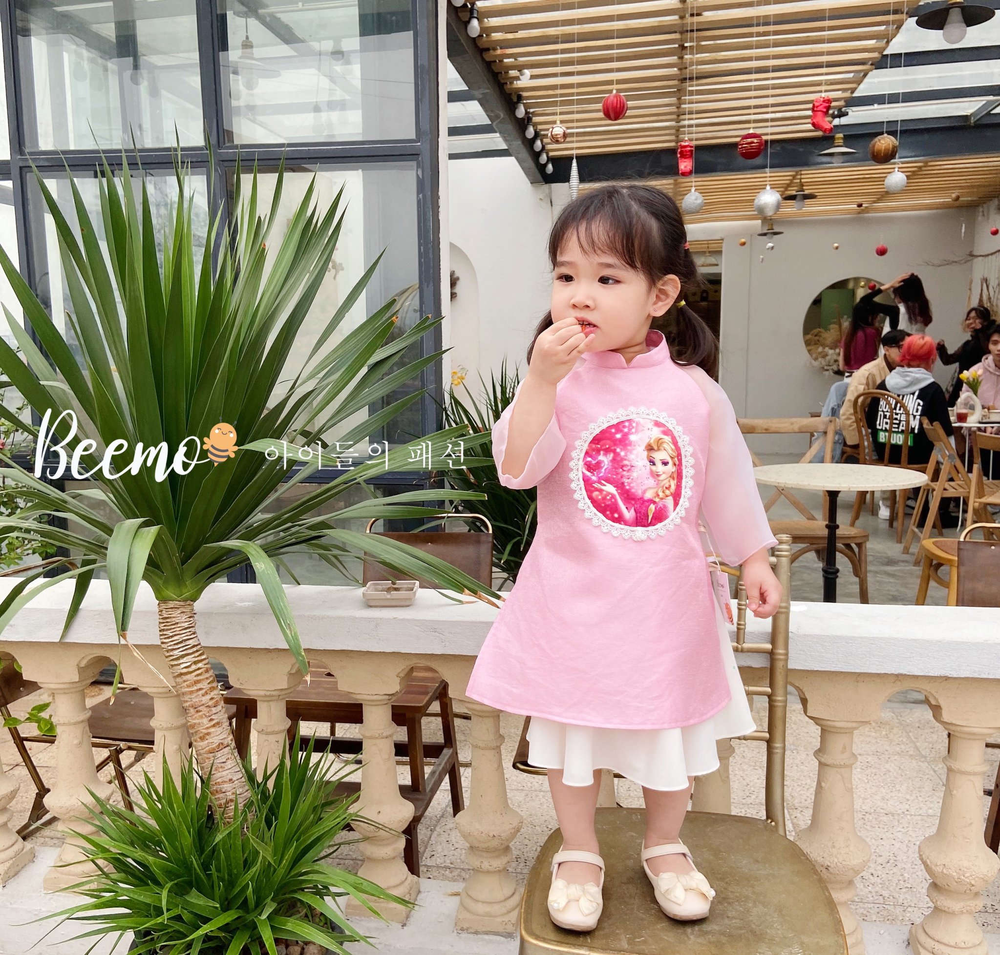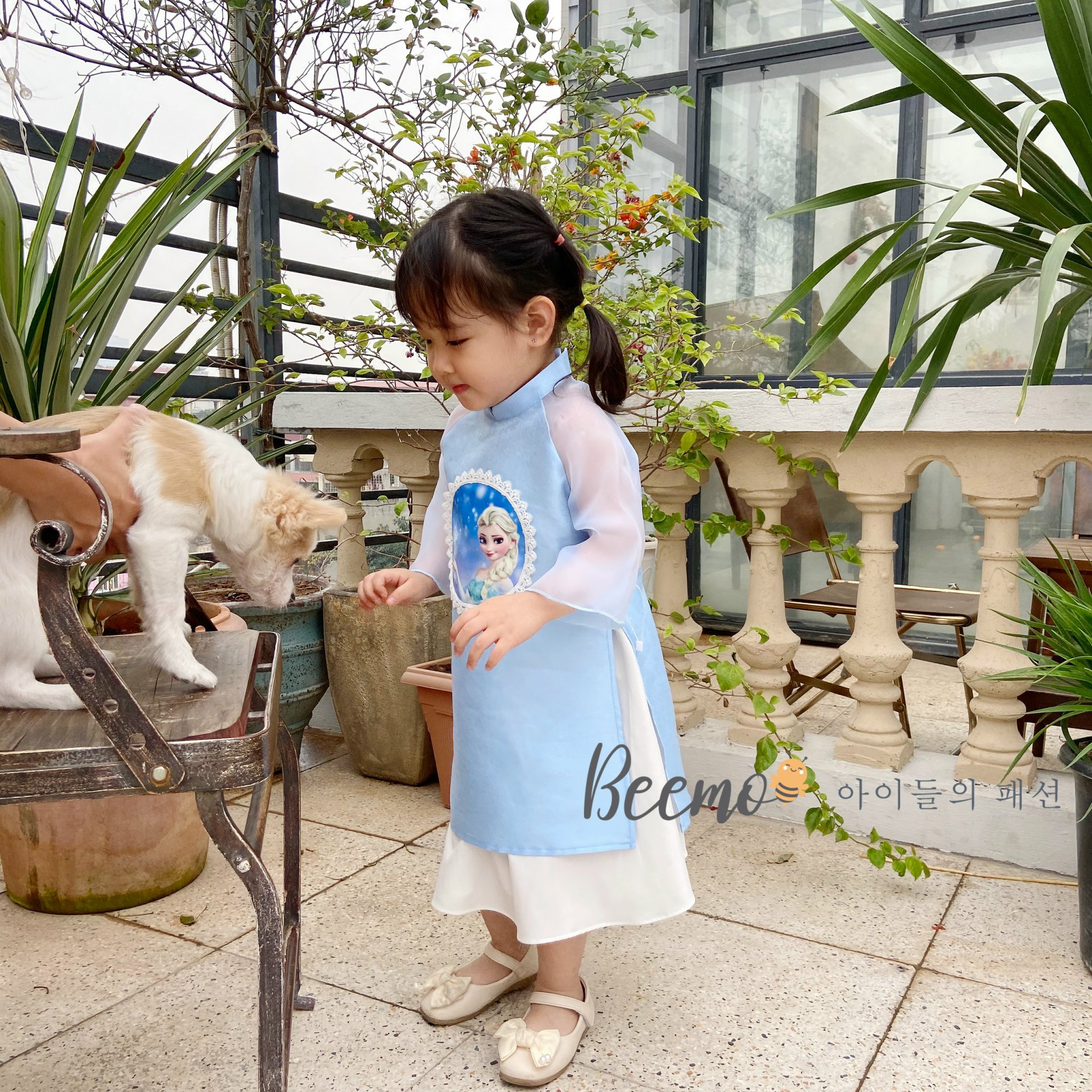 🧨 Áo dài được làm từ chất liệu gấm tatfa phối tay tơ oganza 🧨 Điểm nhấn hình in ELSA và ANNA trước ngực rất đáng yêu, các bé chắc chắn sẽ thích 🧨 2 màu xanh và hồng tone pastel mix chân váy trắng be phù hợp với tất cả các bé 🧨 Bé có thể diện đi chúc Tết, chụp ảnh gia đình hoặc vào các dịp Lễ đều đẹp mẹ nha _____________________ Size: 80 - 130 (10- 23kg) Color: xanh - hồng 👉 Sỉ liên hệ SĐT/Zalo: 039.706.55555