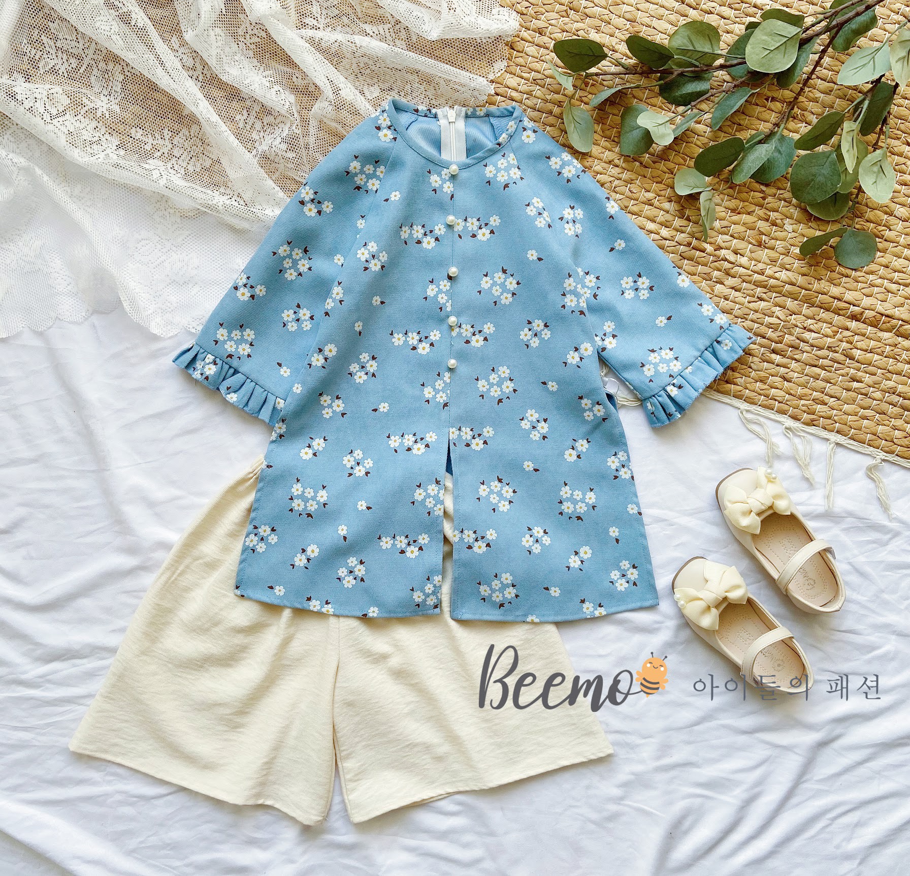 𝑆𝐸𝑇 𝐴́𝑂 𝐷𝐴̀𝐼 𝑁𝐻𝑈𝑁𝐺 𝑇𝐴̆𝑀 𝐻𝑂𝐴̣ 𝑇𝐼𝐸̂́𝑇 𝐻𝑂𝐴 𝐶𝐻𝑈̀𝑀 (set gồm áo dài và chân váy)